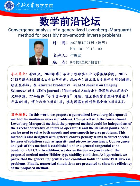 数学前沿论坛第20期 题目:Convergence analysis of a generalized Levenberg-Marquardt method for possibly non-smooth inverse problems
