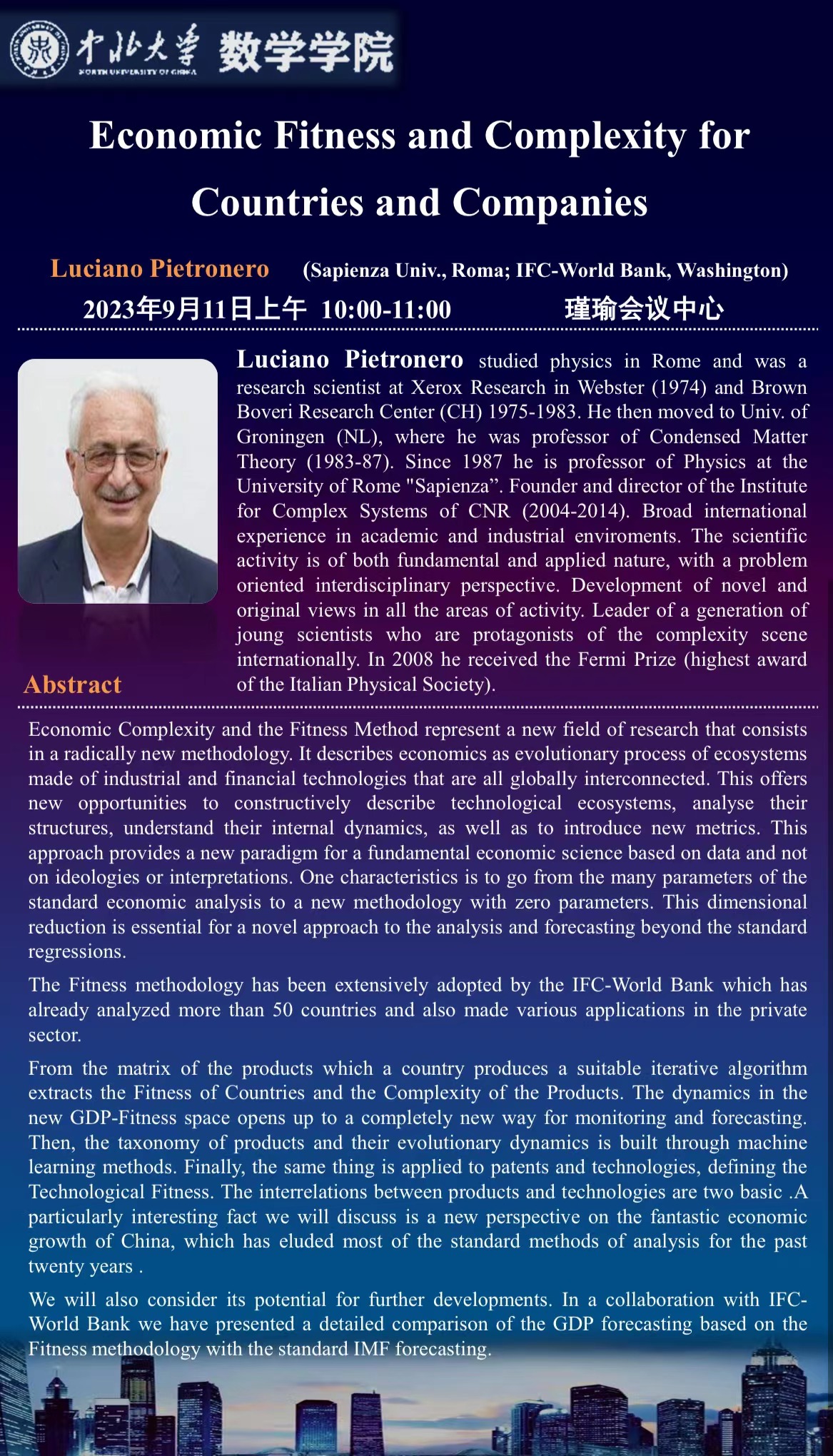 数学前沿论坛第31期 题目:Economic Fitness and Complexity for Countries and Companies