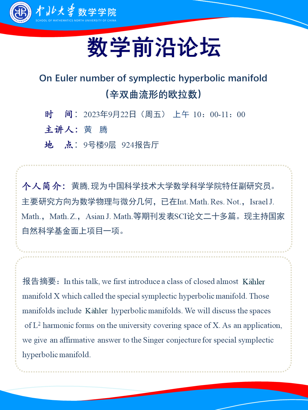 数学前沿论坛第33期 题目:On Euler number of symplectic hyperbolic manifold