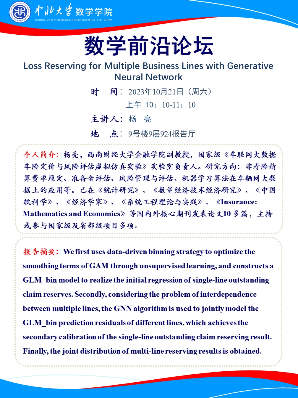 学术前沿论坛第38期 题目:Loss Reserving for Multiple Business Lines with Generative Neural Network