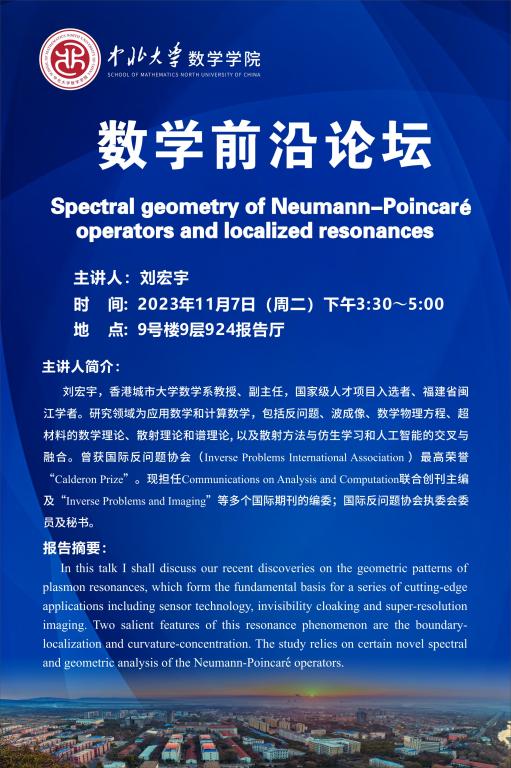数学前沿论坛第44期 题目:Spectral geometry of Neumann-Poincare operators and localized resonances