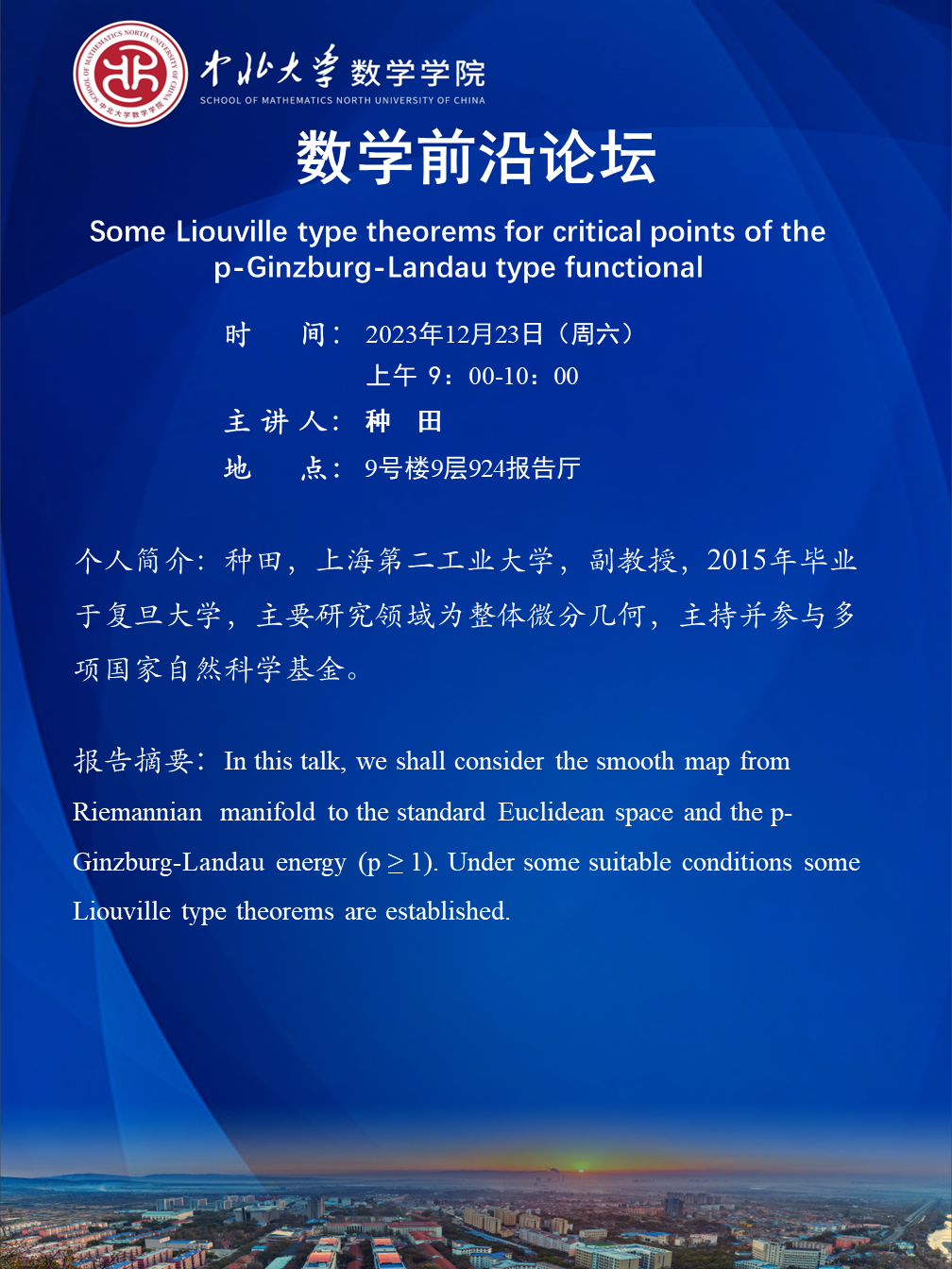 数学前沿论坛第47期 题目:Some Liouville type theorems for critical points of the p-Ginzburg-Landau type functional