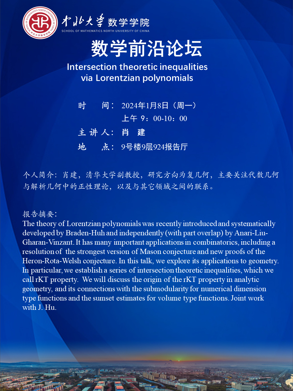 数学前沿论坛第49期 题目:Intersection theoretic inequalities via Lorentzian polynomials