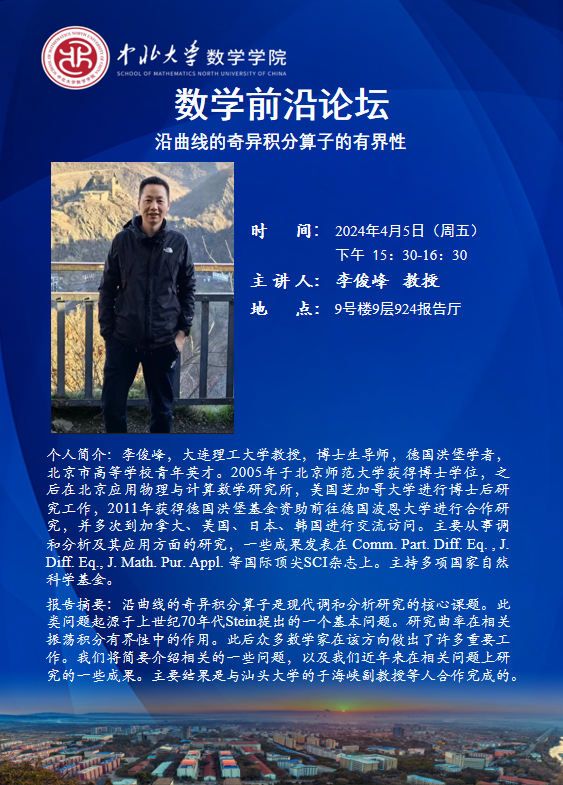 数学前沿论坛第50期 题目:沿曲线的奇异积分算子的有界性