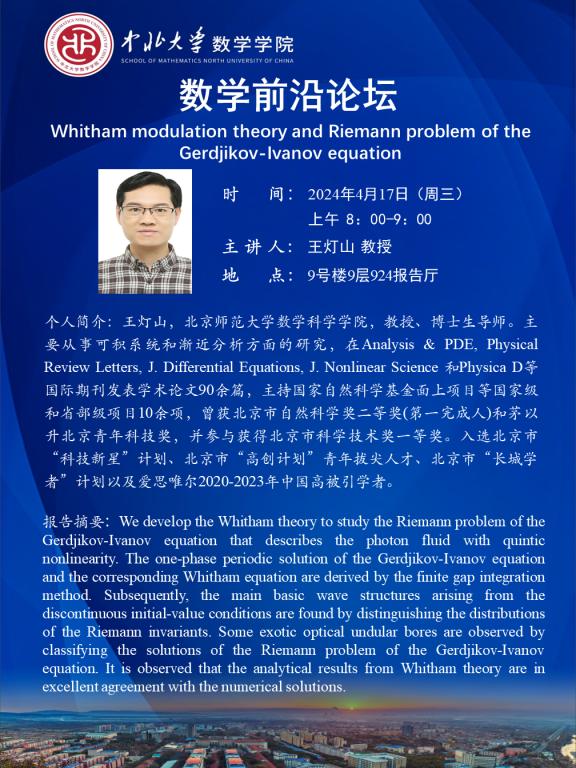 数学前沿论坛第51期 题目:Whitham modulation theory and Riemann problem of the Gerdjikov-Ivanov equation