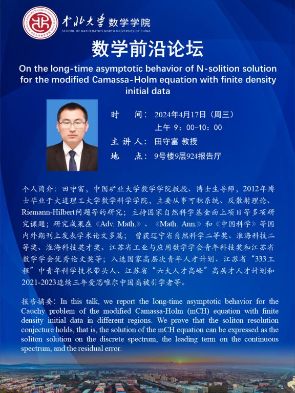 数学前沿论坛第52期 题目:On the long-time asymptotic behavior of N-solition solution for the modified Camassa-Holm equation with finite density initial data