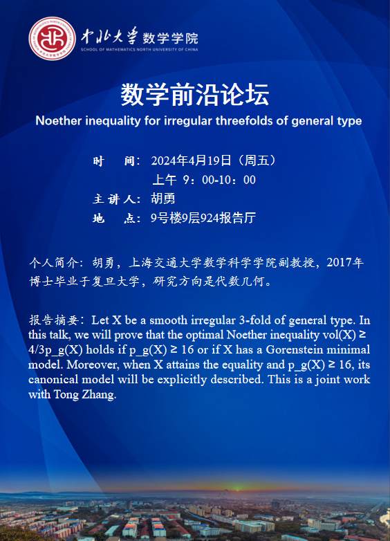 数学前沿论坛第53期 题目:Noether inequality for irregular threefolds of general type