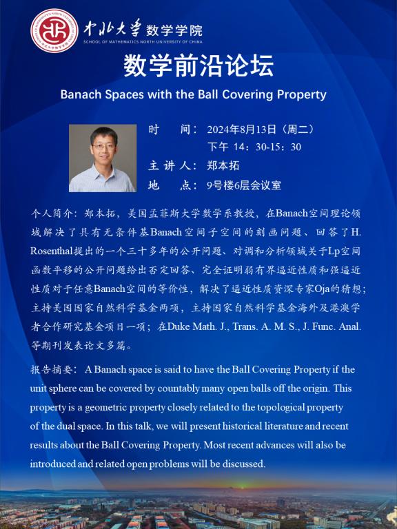 数学前沿论坛第56期 题目:Banach Spaces with the Ball Covering Property