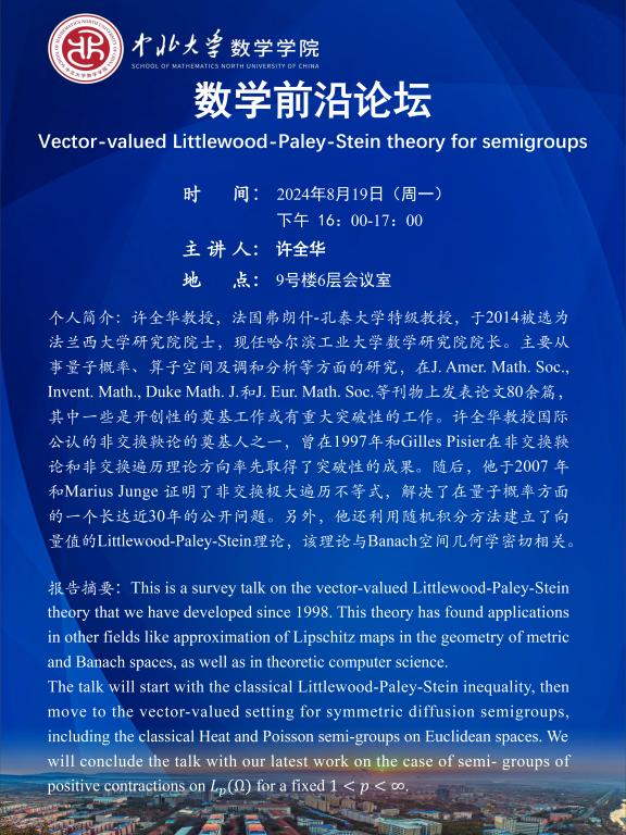 数学前沿论坛第58期 题目:Vector-valued Littlewood-Paley-Stein theory for semigroups