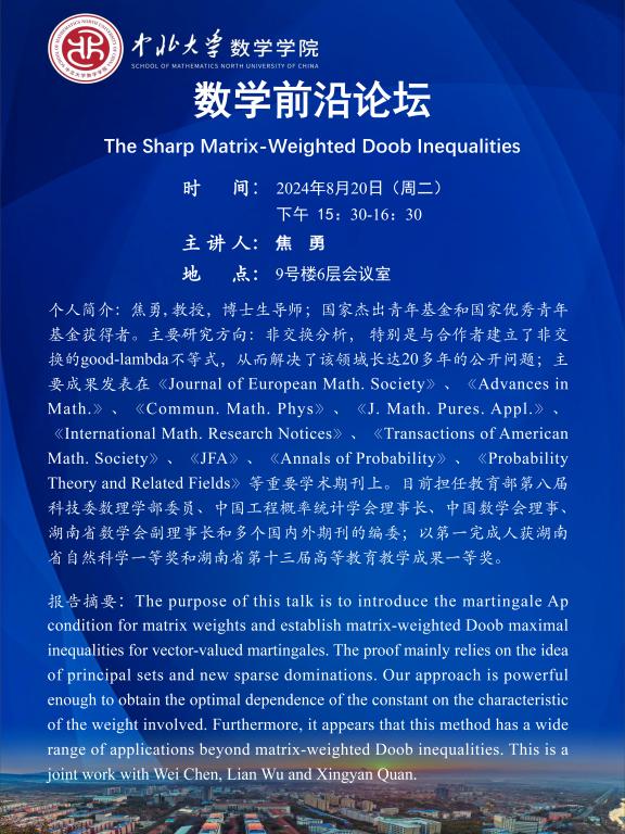 数学前沿论坛第61期 题目:The Sharp Matrix-Weighted Doob Inequalities