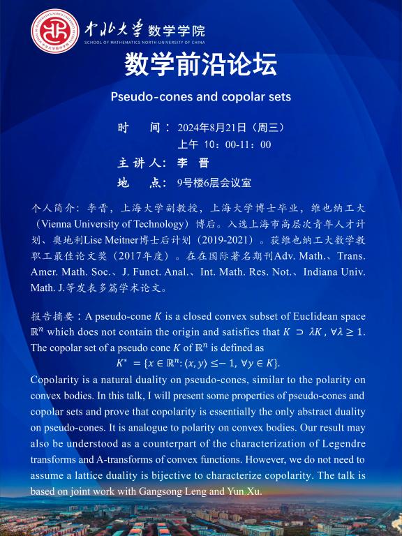 数学前沿论坛第65期 题目:Pseudo-cones and copolar sets