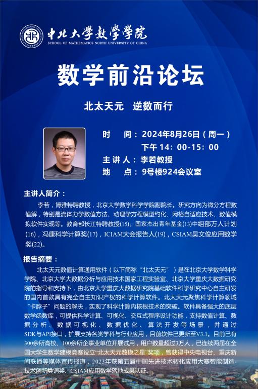 数学前沿论坛第69期 题目: 北太天元 逆数而行