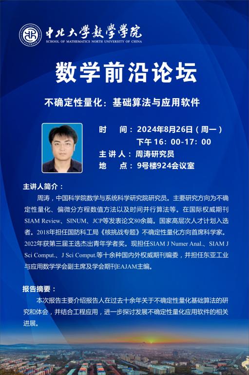 数学前沿论坛第71期 题目:不确定性量化:基础算法与应用软件