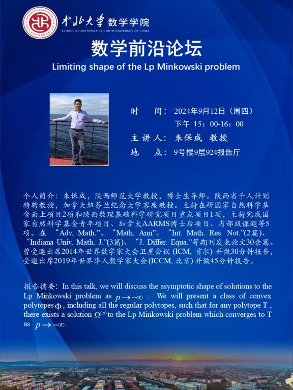 数学前沿论坛第78期 题目:Limiting shape of the Lp Minkowski problem