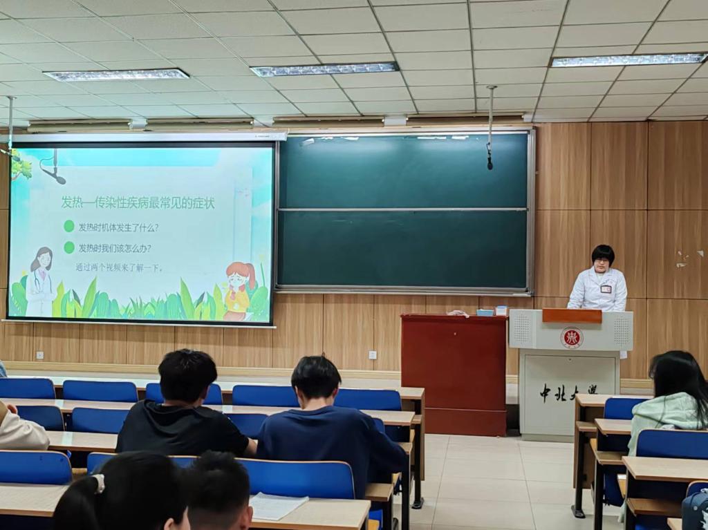 附属医院赵牛鑫医生为大家开展一场传染病知识讲座。学院大一、大二300余名学生参加讲座。