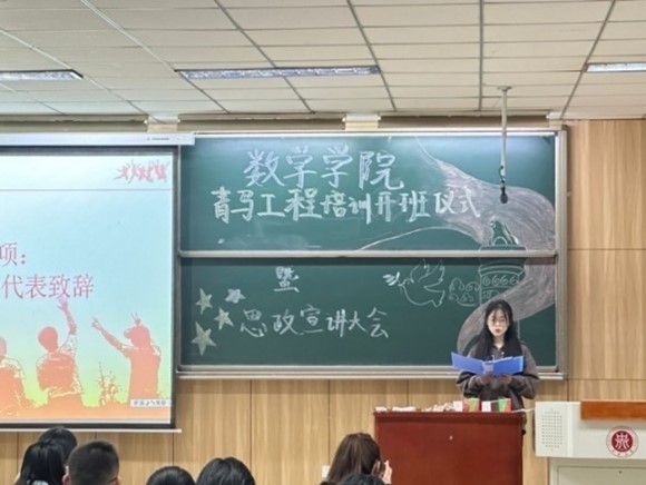 首先,由老师(院党委副书记孙俊伟书记,团委书记常璇老师)及学生骨干代表致辞。通过老师和学生代表的发言,同学们具体了解了此次青马工程培训开班仪式的主要目的和方向。