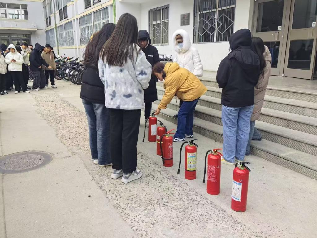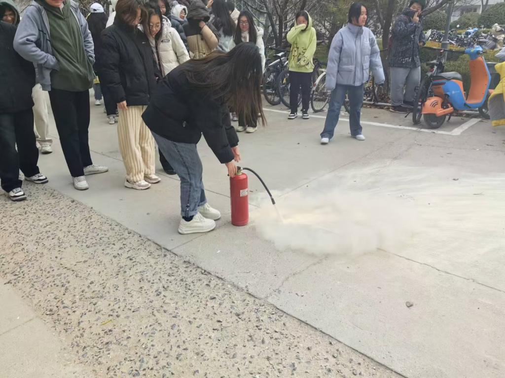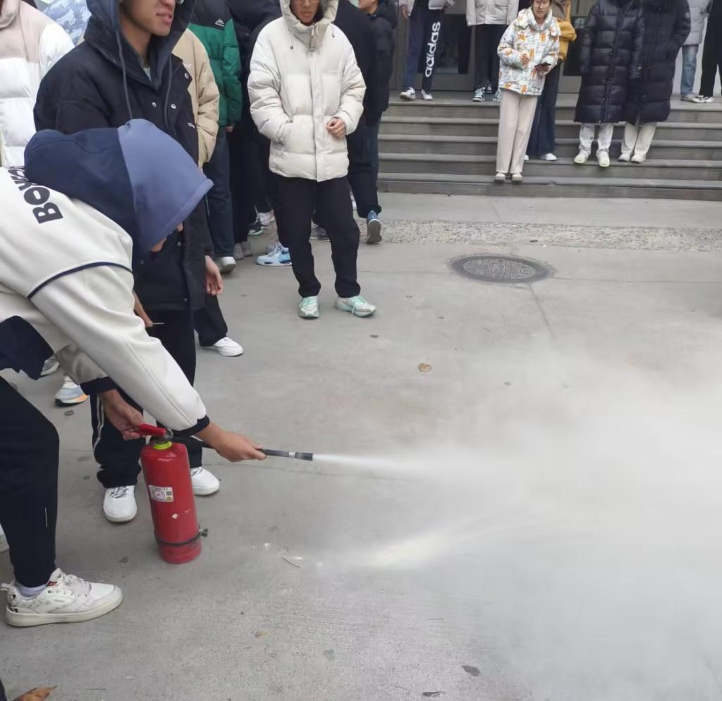 随后,每位同学都按照要领操作灭火器,人人都会使用灭火器,正确掌握灭火器的操作方法。