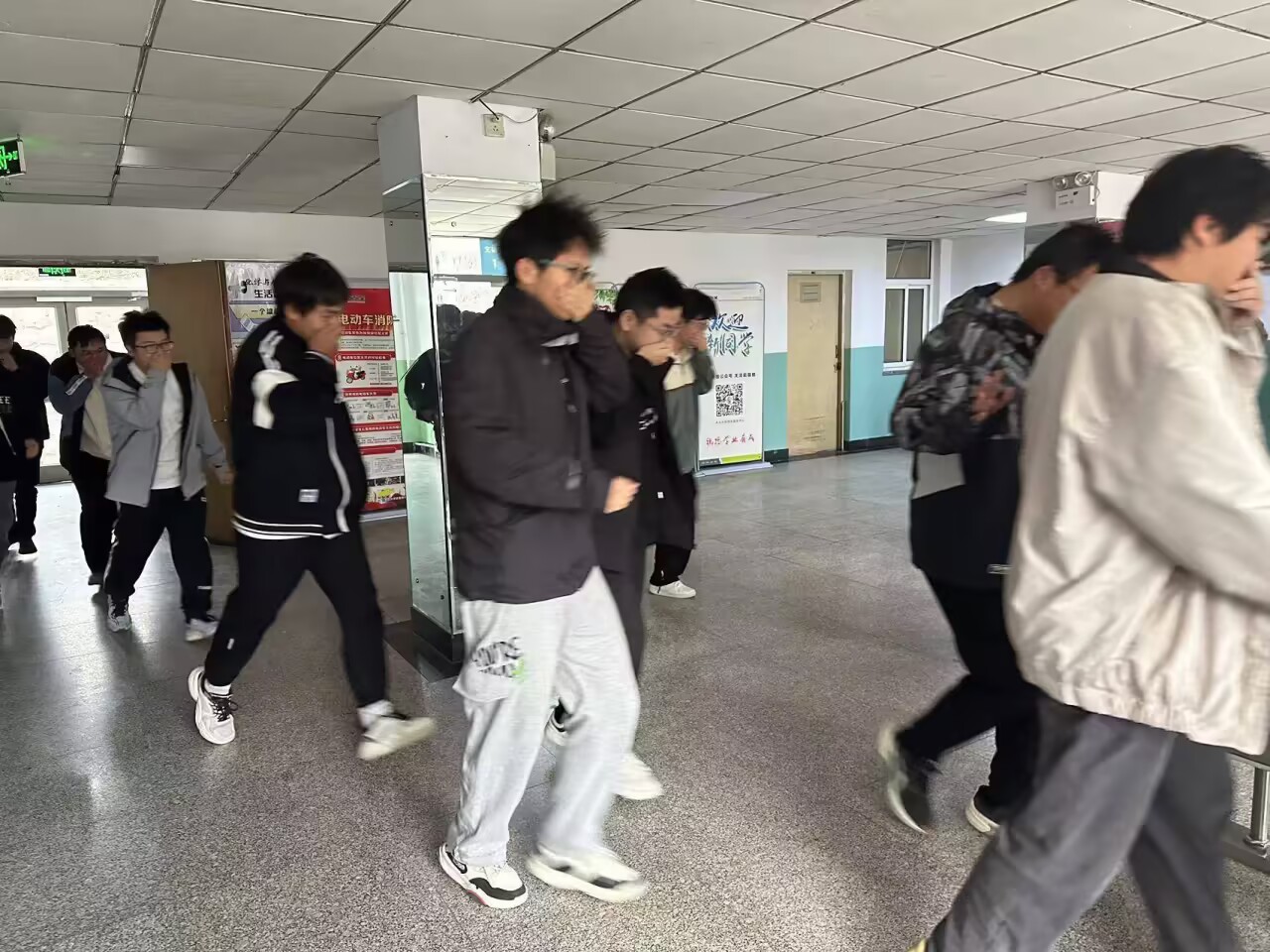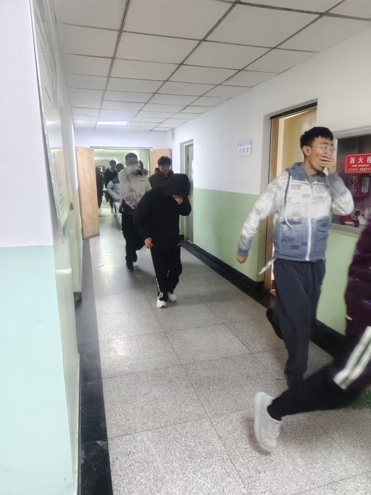学生的应急响应能力,本次考核三个方面的内容:安全隐患查找、灭火器使用:掌握操作步骤、实景逃生。演练前,对学生进行消防常识教育、讲解演练的目的、要求和消防应急疏散知识。特别强调演练纪律,明确行走、跑步的路线,躲避障碍物的方法等,做好演练前的各项准备工作。