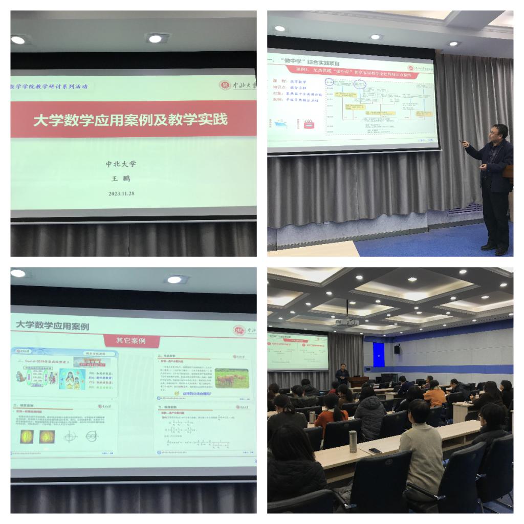 副院长王鹏教授作了有关《大学数学应用案例及教学实践》讲座。