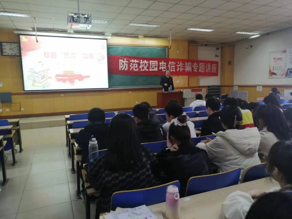 承办的防范校园电信诈骗专题讲座在09402举行。