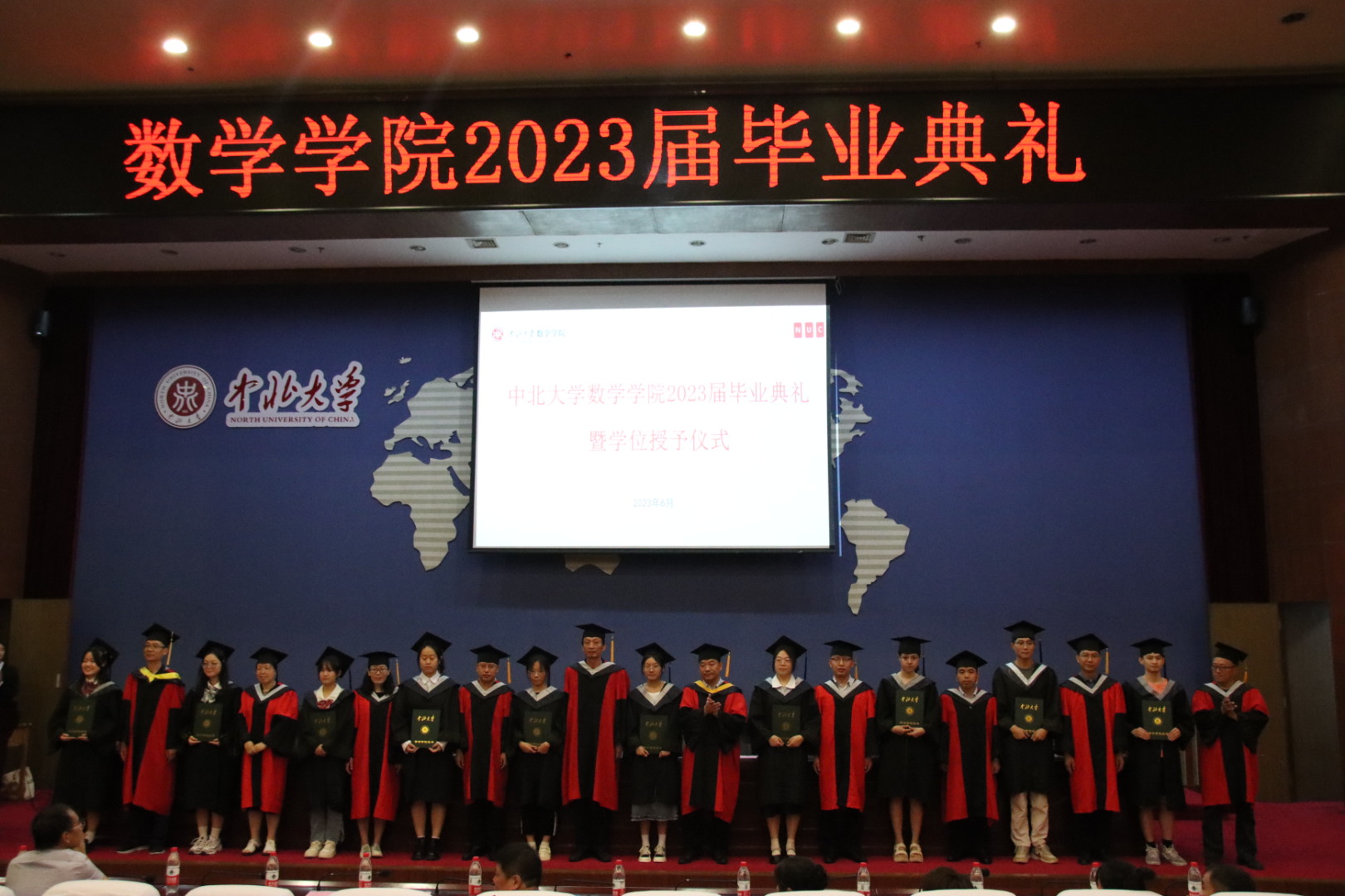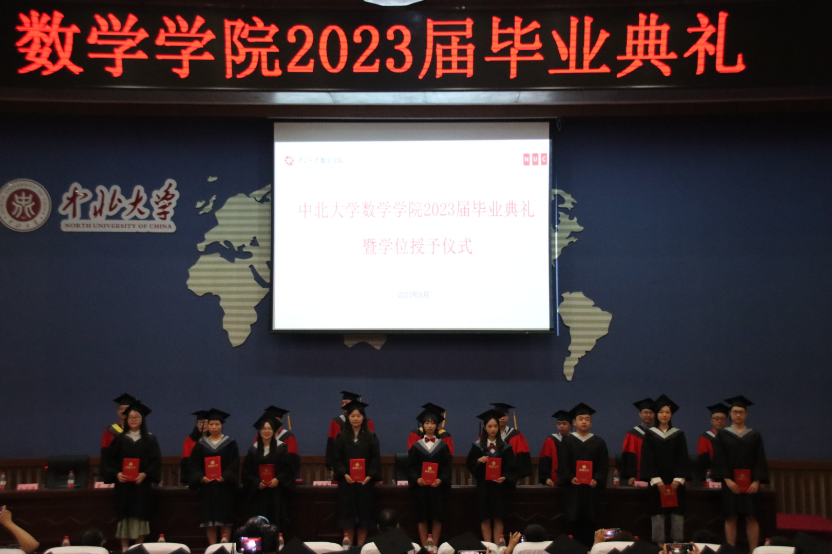 硕士学位拟授予情况。院长孙桂全及院领导和系主任为全体毕业生授予学位证书、拨穗正冠并合影留念。