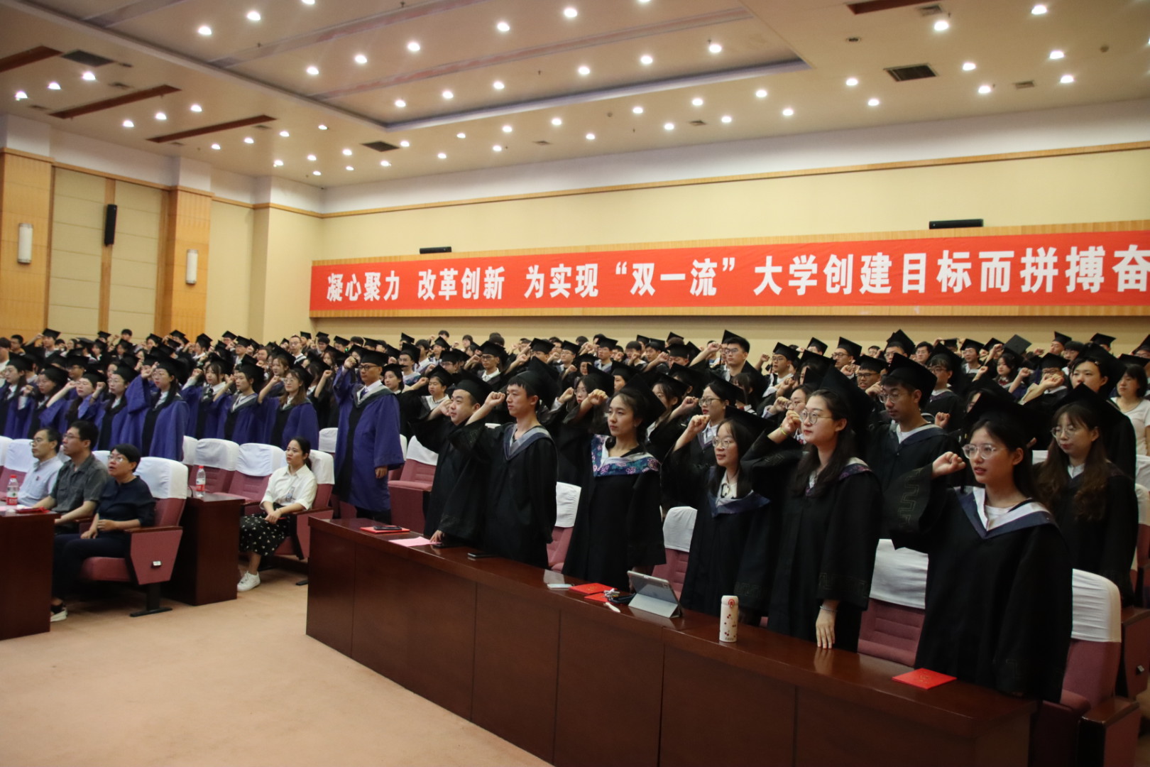 随后,全体毕业生起立进行毕业宣誓。