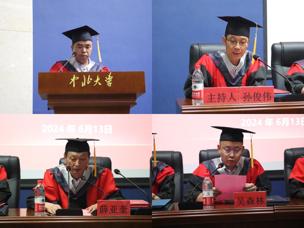 硕士学位拟授予情况。院党委书记薛亚奎及院领导和系主任为全体毕业生授予学位证书、拨穗正冠并合影留念。