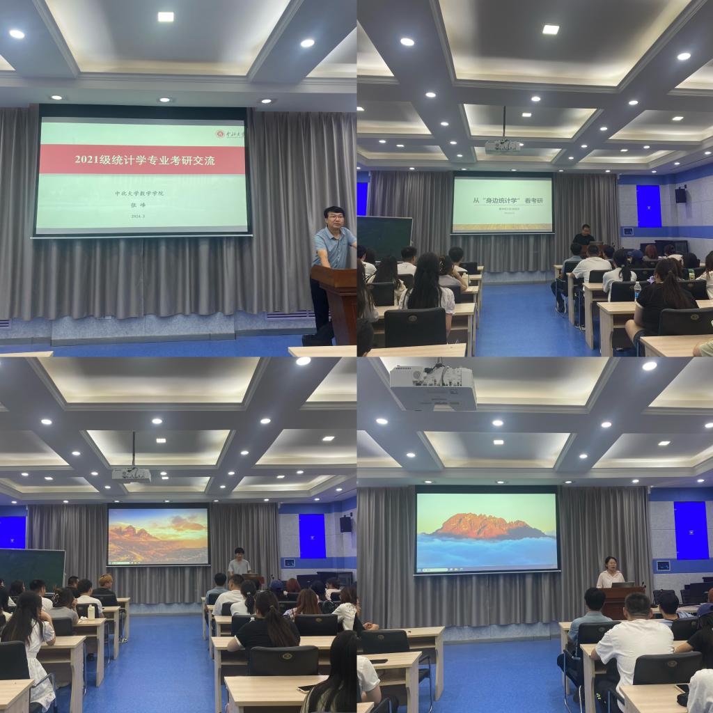统计学专业在学院924报告厅举行了21级考研交流会。此次交流会旨在为准备考研的同学提供宝贵的经验和指导,帮助他们更好地规划考研之路。出席这次动员会的有统计系主任张峰、专业课教师麻俊杰、20级考研学生代表、2021级统计学班主任及21级统计学专业学生,与在场的学生们进行了深入交流。