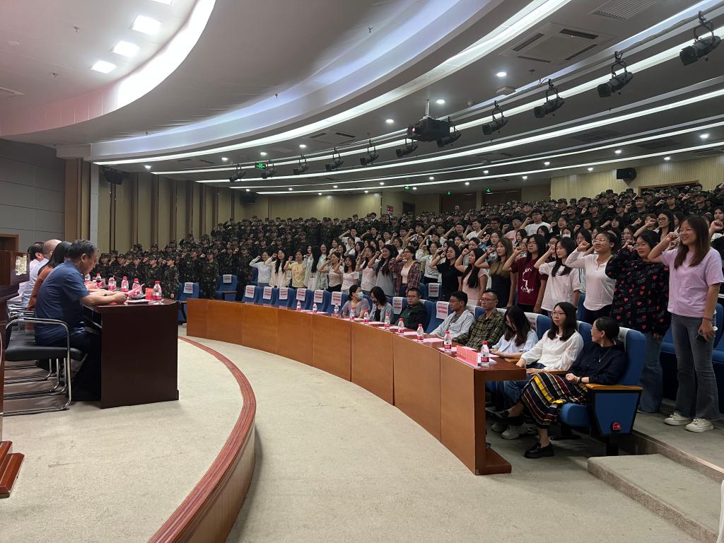学生会执行主席刘玮同学领誓,在庄严肃穆的宣誓词声中,2024级新生全体起立进行了新生宣誓仪式。
