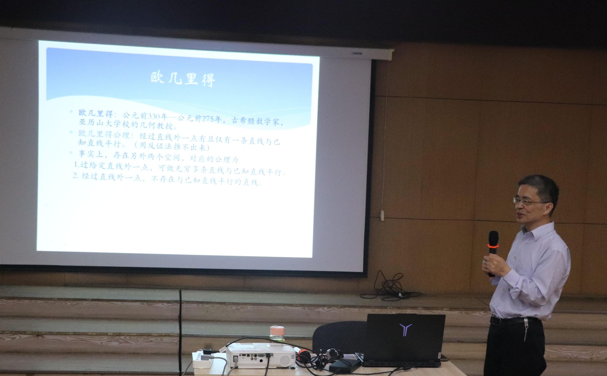 讲座从“几何”一词的中西渊源切入,串联起数学史上的关键人物与思想。古希腊欧几里得《几何原本》创立公理体系,其传入中国历经徐光启与利玛窦合译前六卷、李善兰与A. Wylie完成后九卷,利玛窦与徐光启还创制了“平行线”等术语,成为中西科学交流典范。随后讲座跨越至笛卡尔创立解析几何,将几何与代数相连,并提及心形线的传说。近代部分,以伽罗瓦与克莱茵引入“群”的观点,统一看待欧氏、射影等几何。压轴部分聚焦现代几何发展:黎曼奠定现代几何基础,芬斯勒几何推广了度量结构。中国数学家陈省身的生平与成就将讲座推到高潮—从师从姜立夫、布拉施克、嘉当,到证明Gauss-Bonnet 定理内蕴形式、创立陈示性类,晚年倡导芬斯勒几何并取得突破,陈省身先生“做新的不同的学问”的精神深深鼓舞听众。