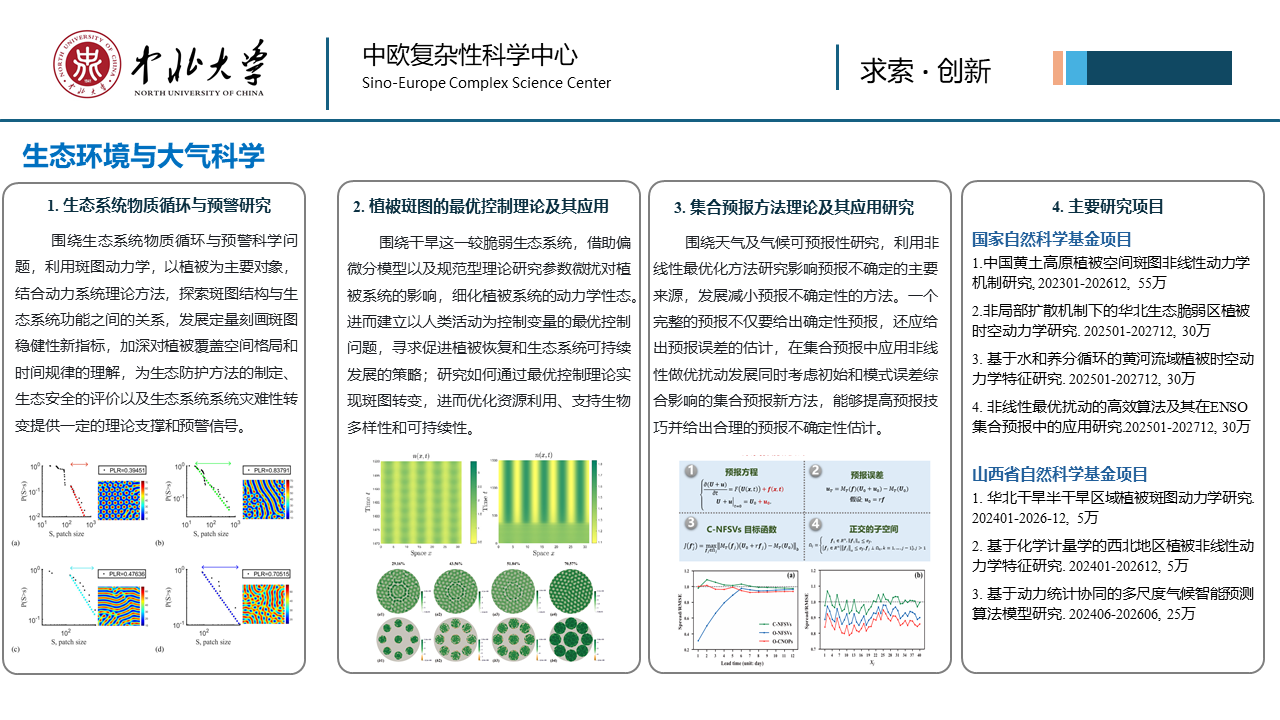 自中心组建以来,先后承担国家自然科学基金项目11项(含优秀青年基金1项),国家重点研发计划项目1项,山西省自然科学基金10余项。此外,中心还和中国科学院大气物理研究所、上海交通大学、北京师范大学、西北工业大学、武汉大学和美国迈阿密大学等国内外著名高校和科研院所存在合作关系。